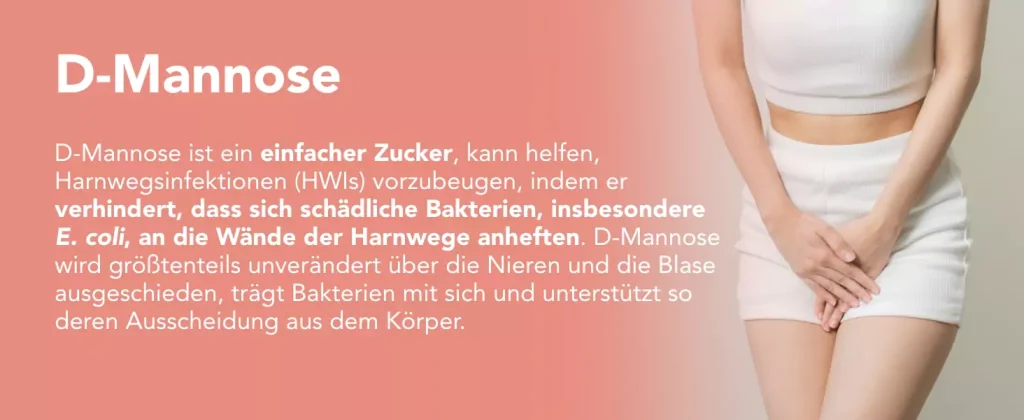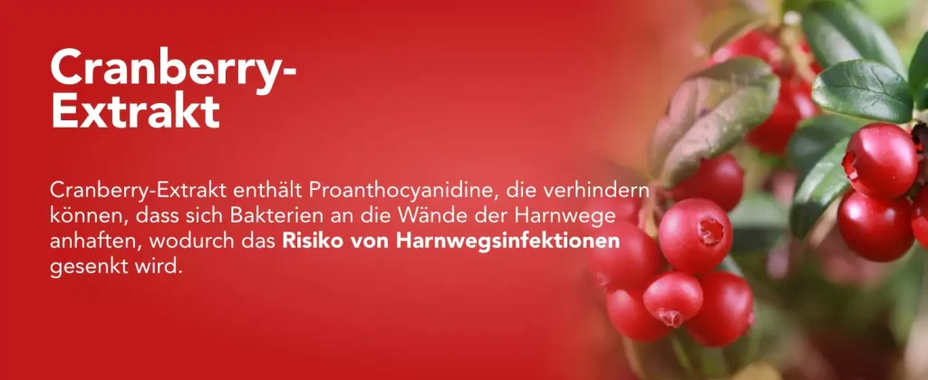 - Kammer 2: 500 mg D-Mannose, 120 mg Cranberry-Extrakt (davon 36 mg PAC)